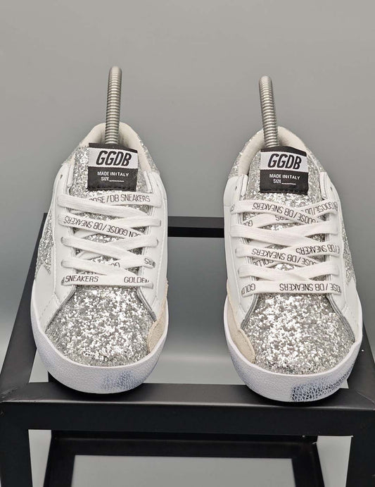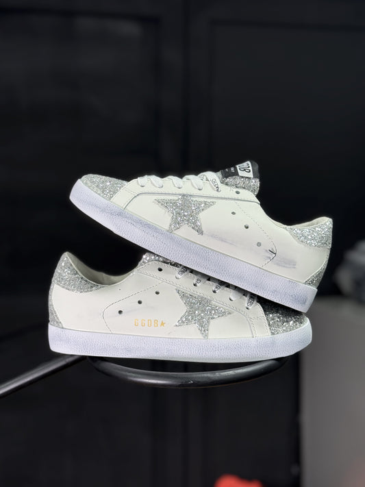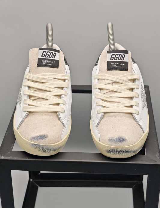 Golden Goose Super-Star White Dark Grey Glitter