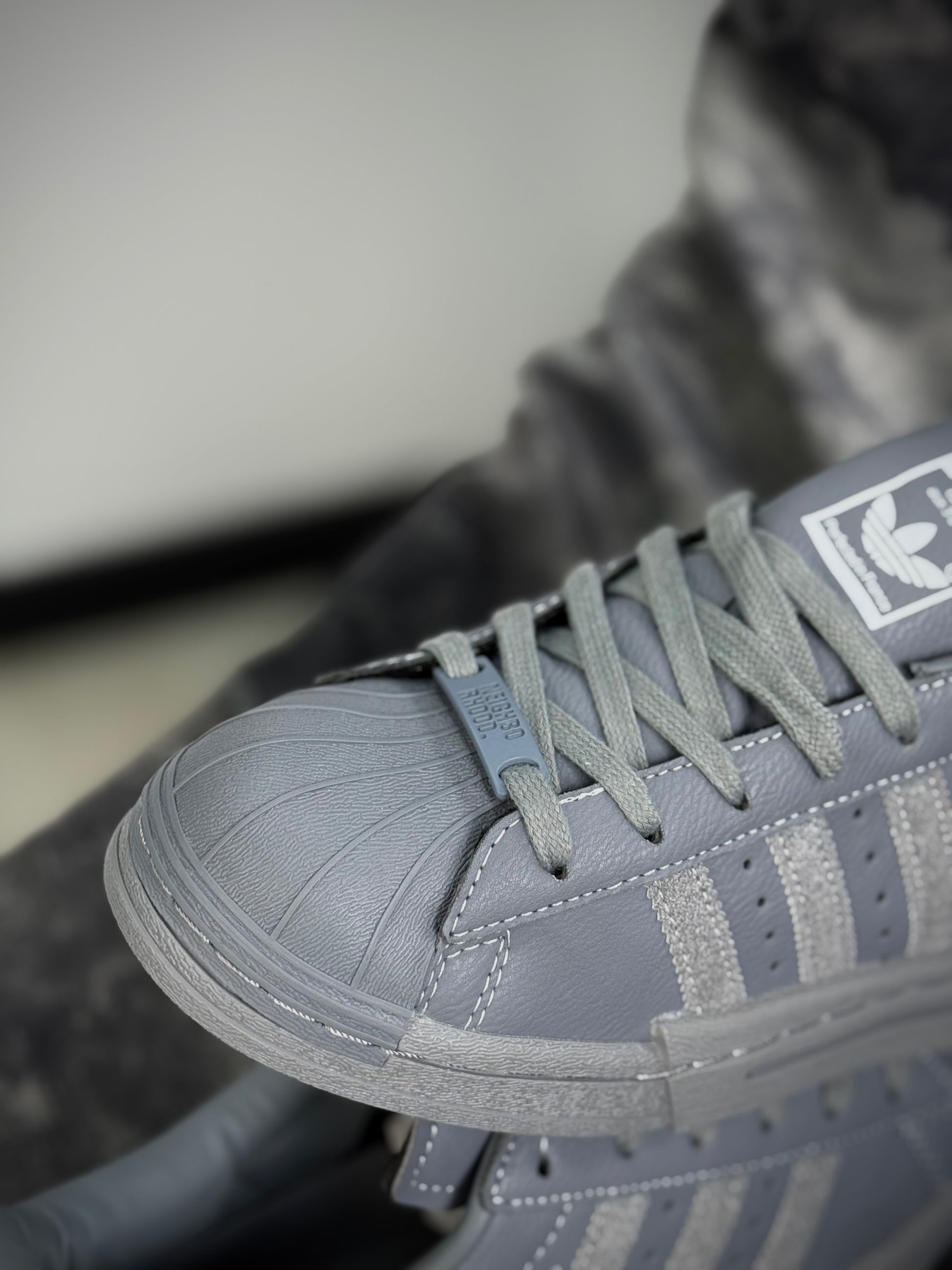 Los Adidas Superstar Neighborhood – Edición Grey Steel combinan estilo callejero con una construcción resistente y de alta calidad. Su diseño en tono gris metálico, junto con detalles en relieve y el icónico gráfico de calavera en el talón, crean un look agresivo, moderno y perfecto para quienes buscan destacar sin renunciar a la comodidad.