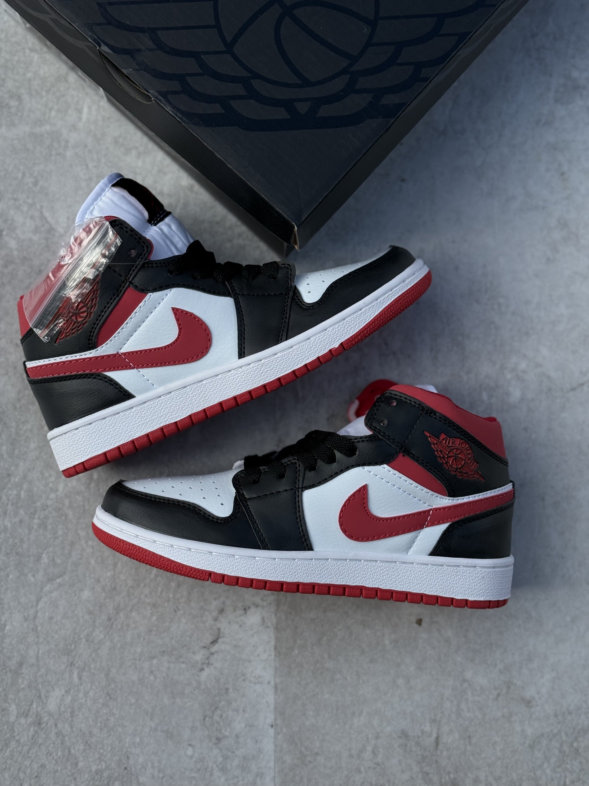 Su diseño de corte medio brinda soporte adicional al tobillo, mientras la suela de goma con patrón de tracción clásico de Jordan asegura agarre y durabilidad en cada paso. La amortiguación interna garantiza comodidad para el uso diario, haciendo de este par una opción perfecta para jóvenes amantes del estilo urbano y la herencia sneaker.