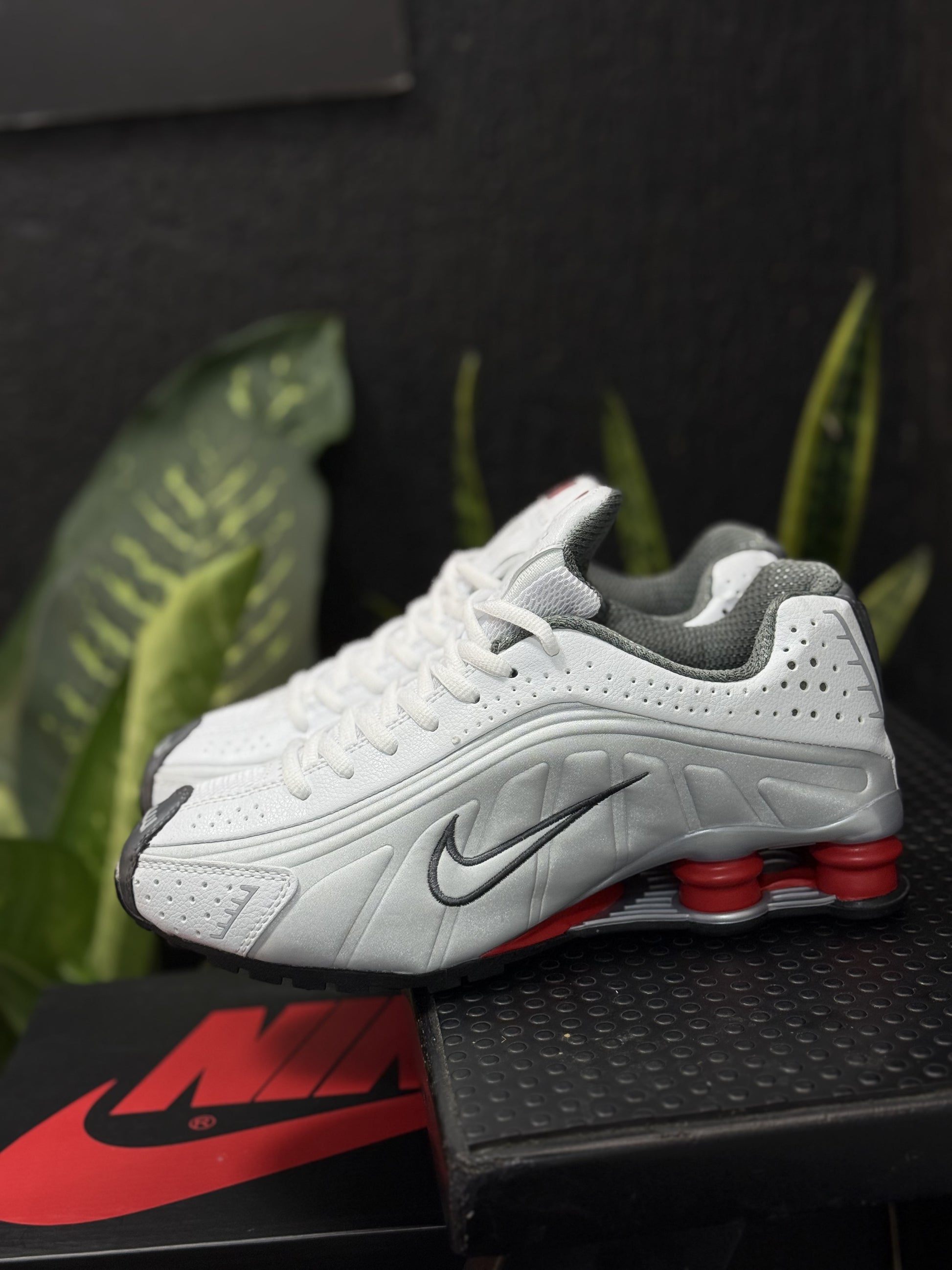 Los Nike Shox R4 White/Red combinan el estilo clásico de los 2000 con la innovación y energía del sistema Shox. Su diseño en color blanco con resortes rojos destaca por su contraste potente y su silueta deportiva, ideal para quienes buscan rendimiento y presencia.
